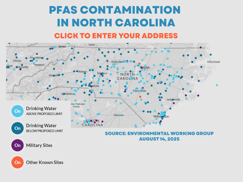 The Environmental Working Group, a research and advocacy group, identified several water systems in North Carolina that contain high levels of forever chemicals including: